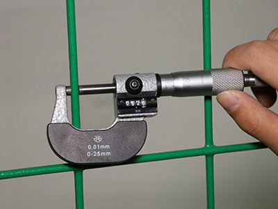 雙邊絲護(hù)欄,立 柱通過48mm x 2mm鋼管浸塑處理,附 件有防雨帽、連接卡、防盜螺栓,連接方式是卡接。
